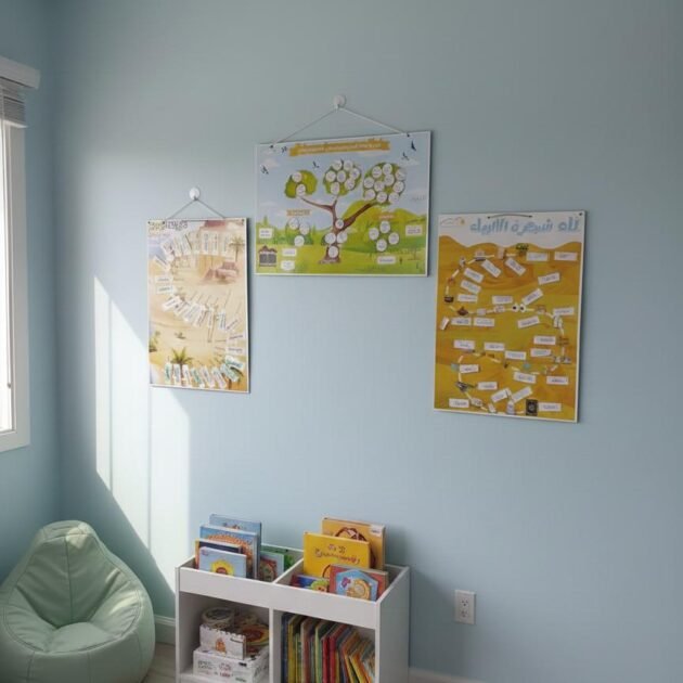 لوحة شجرة الأنبياء و المعجزات: يتعرف الطفل من خلالها على تسلسل الأنبياء و الرسل وأهم المعجزات التي أيدهم الله بيها ، مما يرسخ قصص القران في ذهنه*
