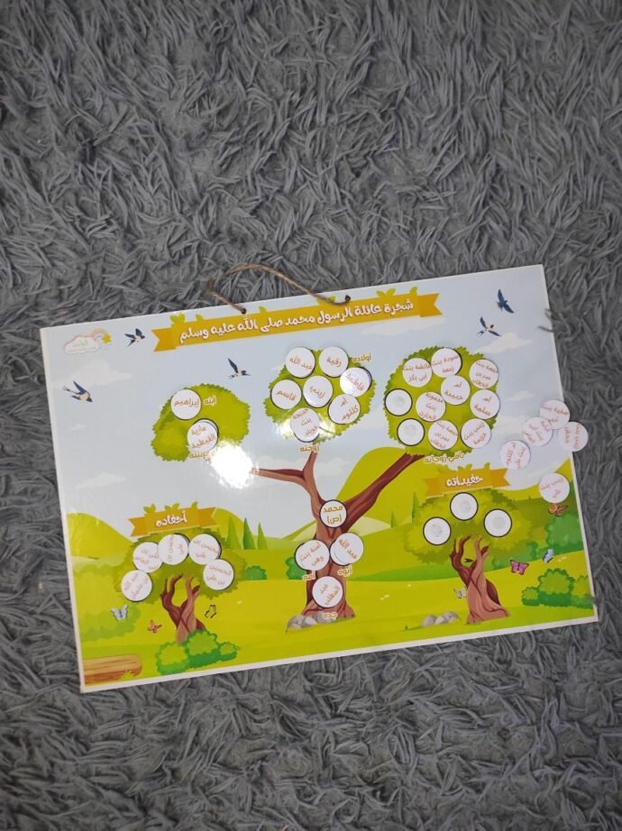 د.ج950.00لوحة شجرة عائلة الرسول محمد ﷺ عبارة عن لوحة خشبية تفاعلية قياسها 30/42 سم تهدف الى تعريف الطفل بآل بيت النبي ﷺ و نسبه الشريف، لتعميق محبته و الاقتداء بسيرته