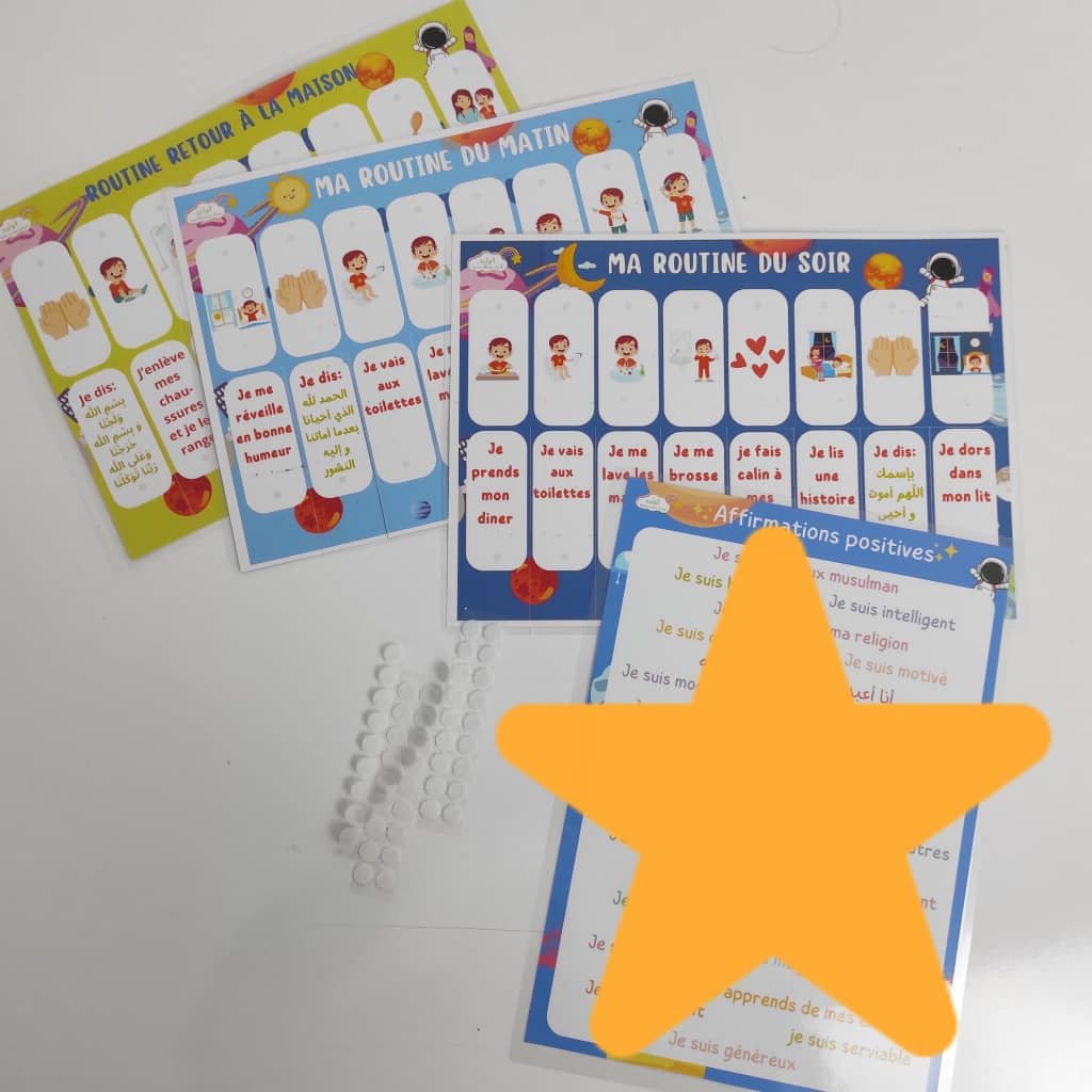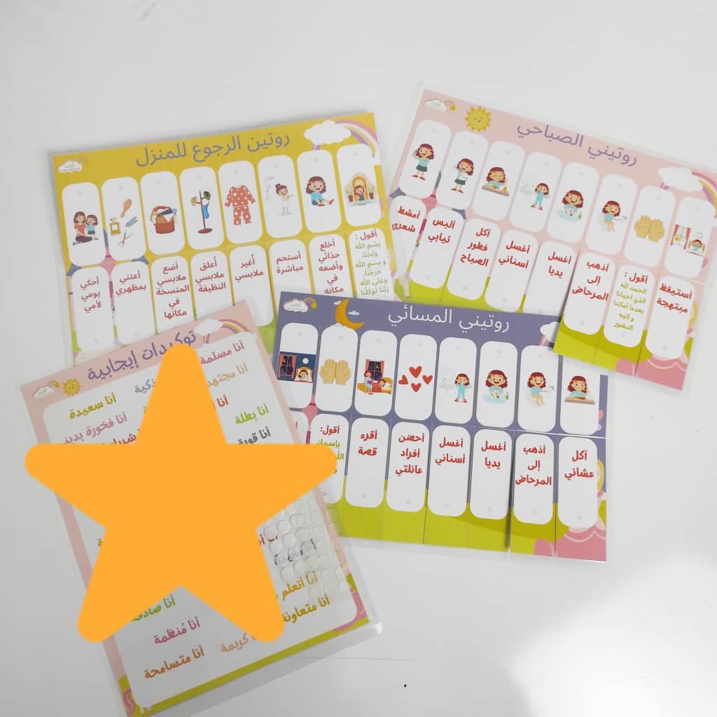🟢مجموعة الروتينات تساعد الطفل على اكتساب عادات جميلة يومية بطريقة تفاعلية مرحة لتفادي تكرار الأوامر والصراخ تتكون من الروتين الصباحي +روتين العودة إلى المنزل +الروتين المسائي + لوحة التوكيدات الإيجابية من أجل تقوية شخصيته