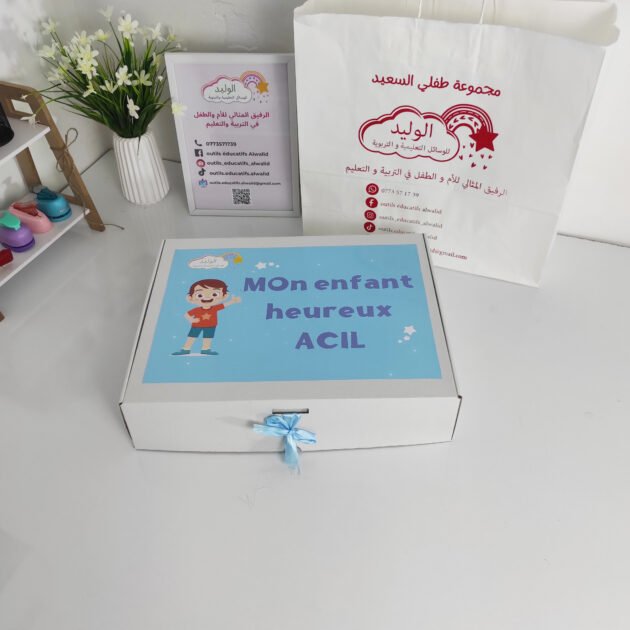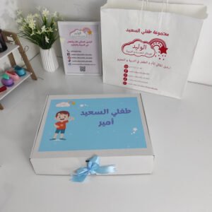 عند اقتناء مجموعة طفلي السعيد كاملة نقدم لك كهدية علبة فخمة مكتوب عليها اسم الطفل + كيس كرافت راقي جدا